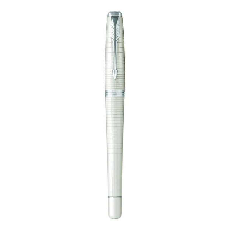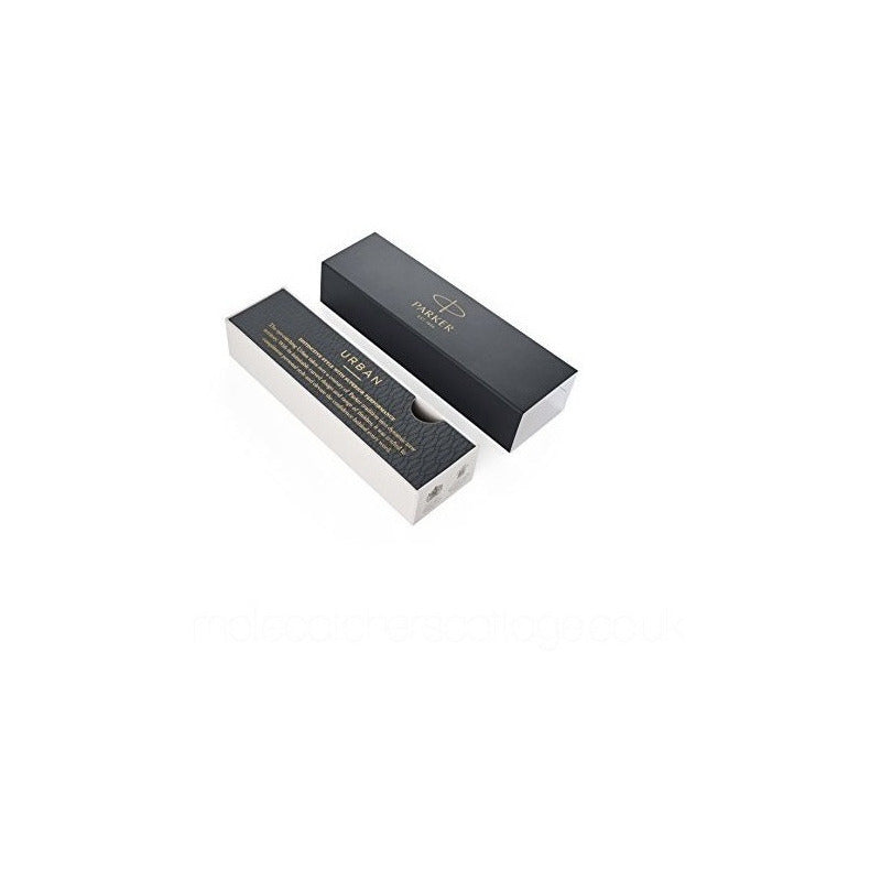 DESCRIPTION Reference: 1931608 Finish: Urban Pearl Metal CT Ink Color: Blue Ink Trims Metal: Stainless Steel Trim Material: Brass Plated & Varnish Cap Material: Brass Plated & Varnish Nib Material: Stainless Steel Nib Distinctive style with remarkable performance. The eye-catching Urban takes over a century of Parker tradition into dynamic new territory. With its inimitable curved design and range of finishes, it was crafted to compliment personal style and elevate the confidence behind every word. The Finish: Dark metallic tones for understated elegance highlights, shiny varnish. Enhanced with an asymmetric chiselled pattern that echoes Urban’s ergonomic form. Complemented with chrome finish trim. The Trim: Chrome finish In the Gift Box