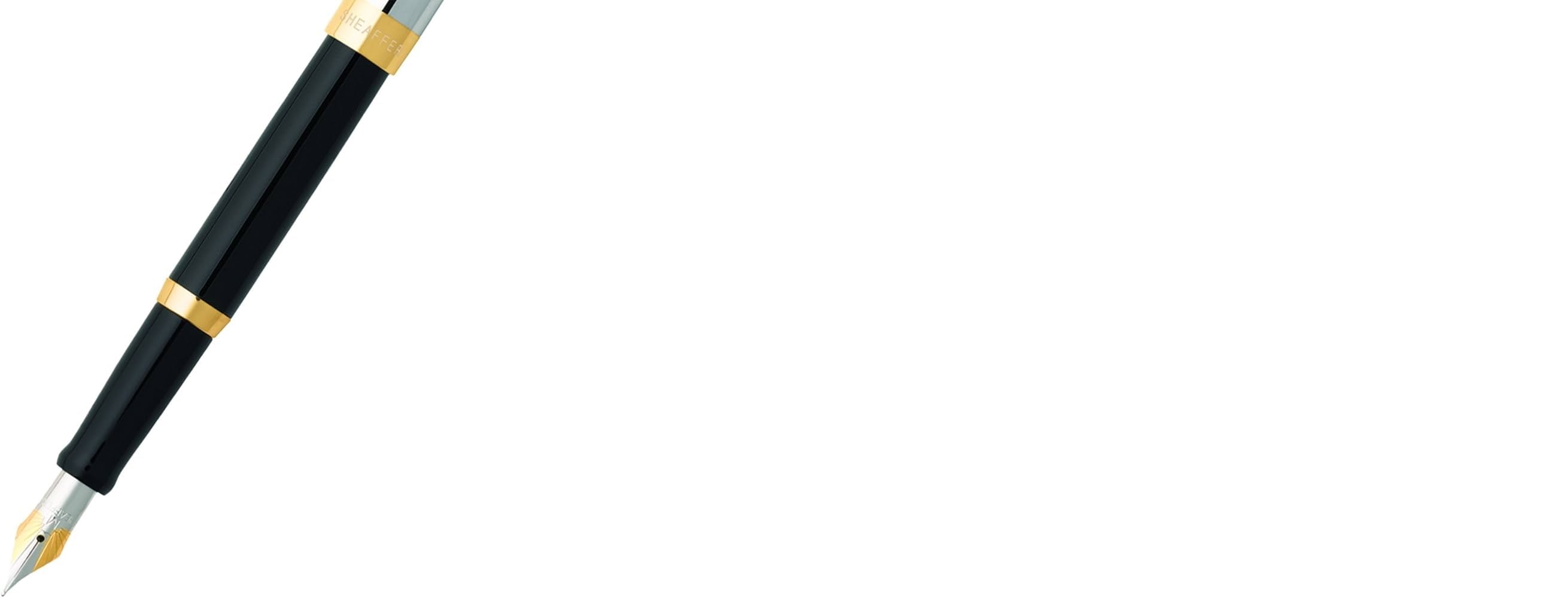 A masterfully crafted fountain pen designed with traditional features, finished with a glossy black lacquer finish, polished chrome cap and shiny gold plated trims.