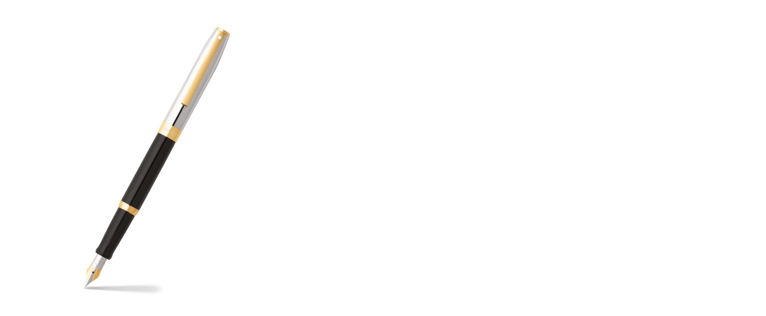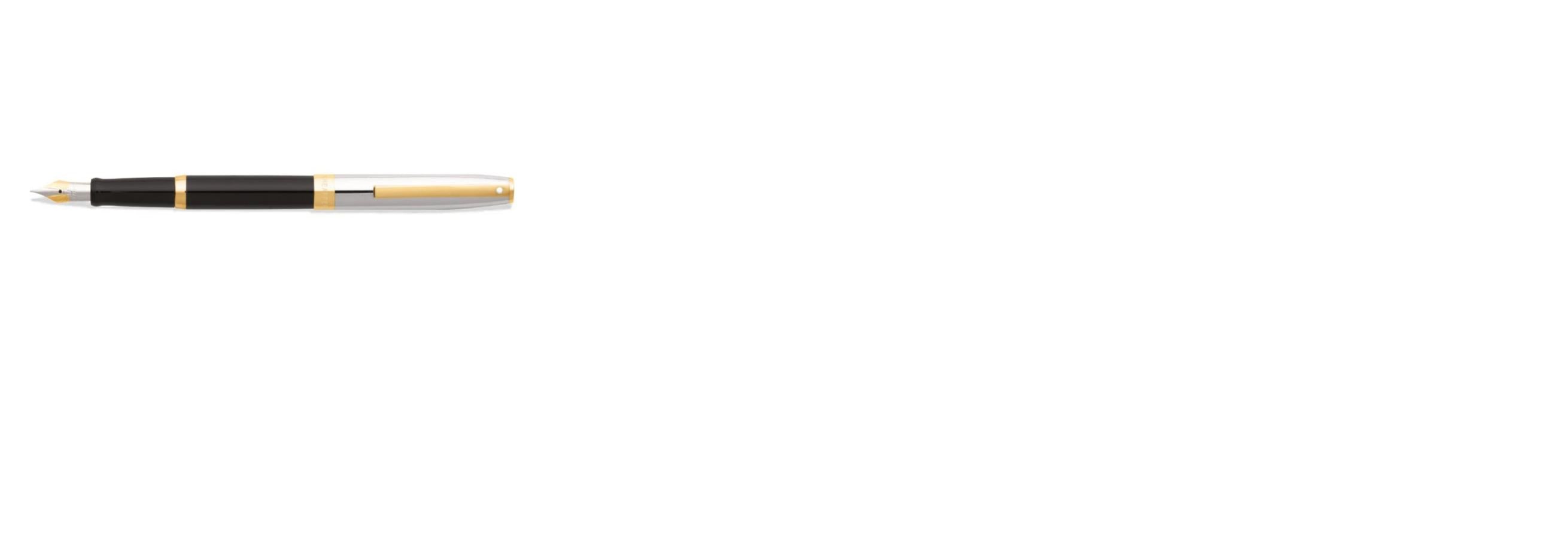 A sophisticated design and precious materials give this pen a unique appearance, designed with traditional features. Sheaffer have masterfully crafted the fountain pen with a glossy black lacquer finish, contrasted by a polished chrome cap and shiny gold plated trims. The nib of the fountain pen is rendered from strong stainless steel and delicately detailed with a modern design, finished with chrome and gold. It is these stunning materials and expertly crafted details that make this fountain pen a stunning writing accessory.