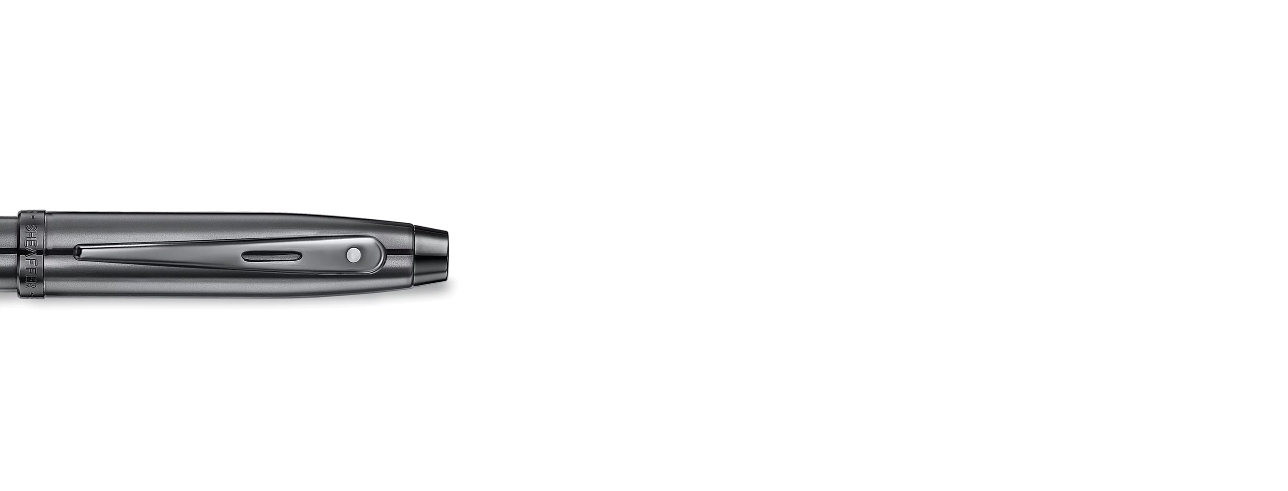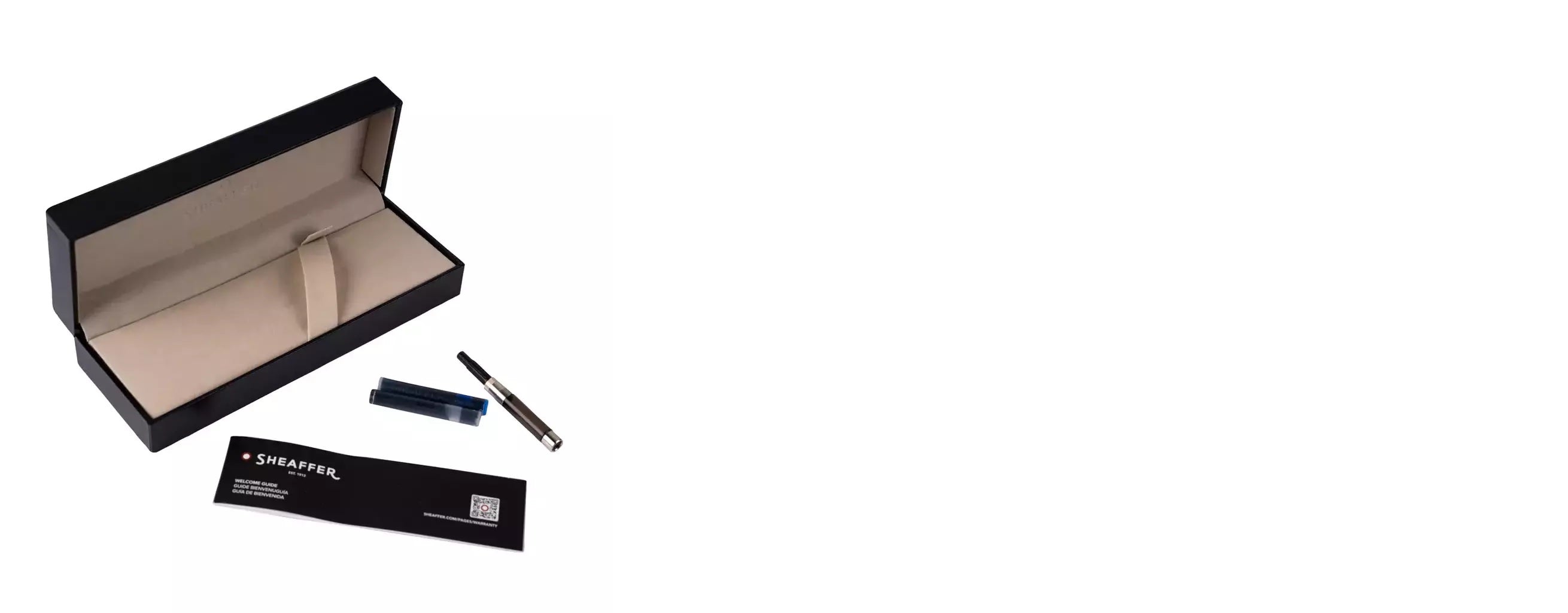 Sheaffer 100 Fountain Pen - Shinny Dark Grey Gunmetal PVD Trim A fountain pen as eye-catching as it is practical, crafted from the finest materials to preserve Sheaffer's well-known reputation for reliable fine writing instruments. Details This Sheaffer 100 fountain pen makes a powerful statement with its timeless appearance. The fountain pen is masterfully crafted with a lustrous Shinny Dark Grey Gunmetal finish and dazzling PVD trims. This fountain pen makes a tremendous writing partner and can be personalised with an engraved name or message. Cap can be removed and placed on to the end of the pen Features a polished metal grip section Includes one blue and one black ink cartridge Can be converted for use with bottled ink (converter and cartridge are included) Supplied in a luxury Sheaffer gift box Brand Sheaffer Sub Brand/Model 100 Type Fountain Pen Finish Shinny Dark Grey Gunmetal PVD Trim Trim Blue Nib Size Medium Nib Finish Stainless Steel Ink/Lead Colour - Actual Black Engraveable Yes Engraving Colour Gold